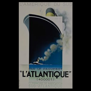 L'Atlantique is a 1930s poster by A. M. Cassandre that depicts a massive ocean liner using clean lines, symmetry, and bold perspective to emphasize power, scale, and modern luxury.